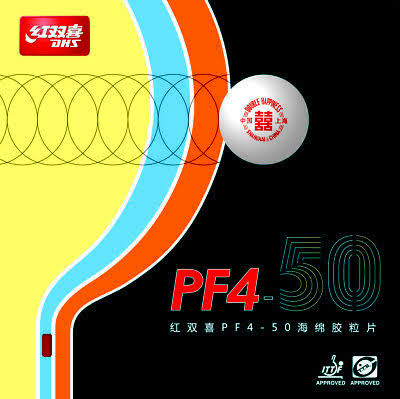 The DHS PF4-50 is a lighter and more elastic version of the classic PF4 rubber, designed to provide a balance between spin, control, and speed. Its tacky surface and No. 50 elastic sponge allow players to generate spin with less effort, making it suitable for quick-attack and loop playstyles. The rubber's moderate throw angle and lighter weight contribute to its versatility and ease of use.