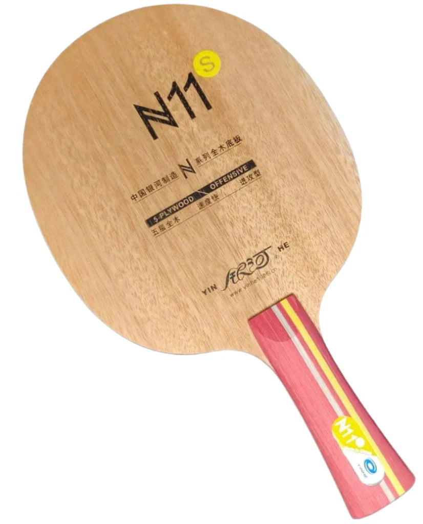 The Yinhe N-11 S is a 5-ply all-wood table tennis blade designed to offer a harmonious balance between speed and control. Its construction provides excellent feedback, making it suitable for players who value precision and versatility in their strokes.